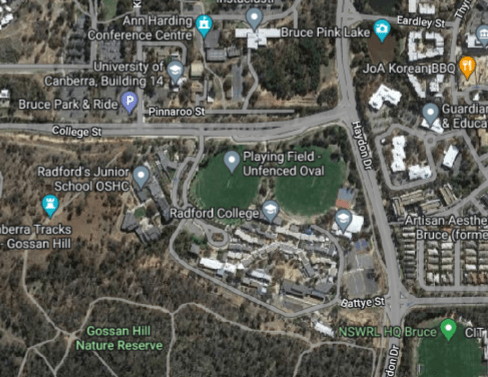 Location of Burgmann School Fields (Valley campus – 4 The Valley Ave, Gungahlin ACT 2912.)